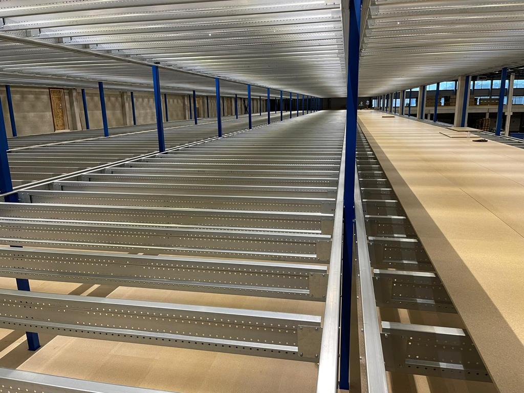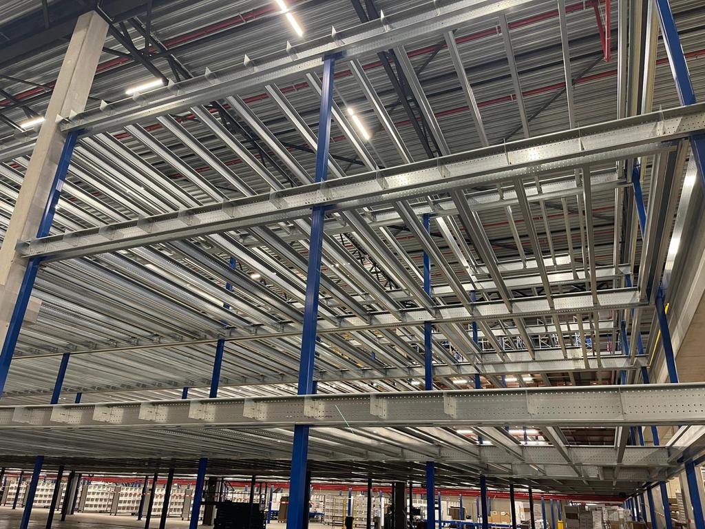 Die Mezzanine wurde mit drei Ebenen bei +3.000 mm, +6.100 mm und +9.000 mm gebaut. Für die Stabilität wurde eine Portalkonstruktion gewählt, die maximale Tragfähigkeit mit minimaler Einschränkung des unteren Raums verbindet. Der Boden wurde speziell für die Lagerung und Kommissionierung von Modeartikeln entworfen, mit viel Aufmerksamkeit für freie Flächen und eine logische Struktur. Nolte Mezzanine begleitete das gesamte Projekt, vom Konzept bis zur Fertigstellung, mit Fokus auf Planung, Flexibilität und enger Abstimmung.
