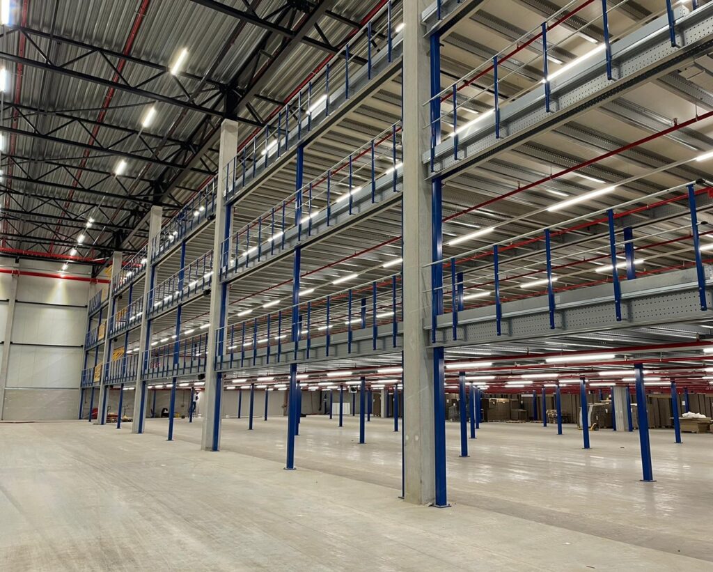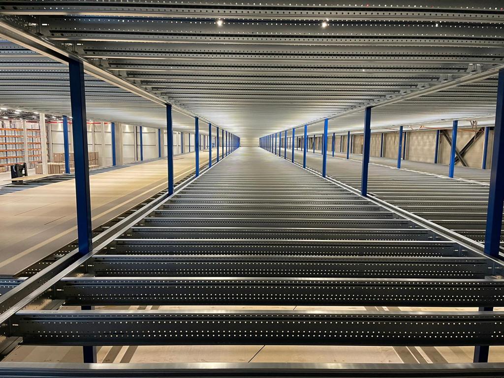 Für Bleckmann Solutions B.V. in Almelo realisierte Nolte Mezzanine eine dreigeschossige Mezzanine. Mit kaltgewalzten Stahlprofilen, einem Stützenraster von ca. 6.000 x 6.000 mm und einem Spanplattenboden entstand eine Konstruktion, die sowohl stabil als auch effizient ist. Dadurch wurde die ursprüngliche Fläche von 8.000 m² auf insgesamt 32.000 m² erweitert, wobei 24.000 m² zusätzliche Fläche innerhalb des bestehenden Gebäudes geschaffen wurden.