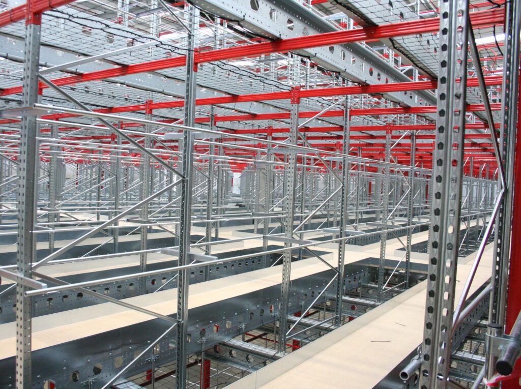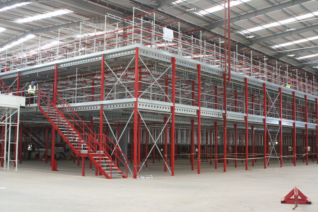 Nolte Mezzanine entwarf eine mehrstöckige Bodenstruktur mit Höhen von +3.812 mm, +4.200 mm und +7.197 mm. Durch Aussteifungen ist die Konstruktion äußerst stabil und eignet sich ideal für die Dynamik der Modelogistik. Die Bühne dient nicht nur der Lagerung, sondern unterstützt auch einen automatisierten Kommissionierprozess, wodurch Geschwindigkeit und Übersichtlichkeit gesteigert werden.