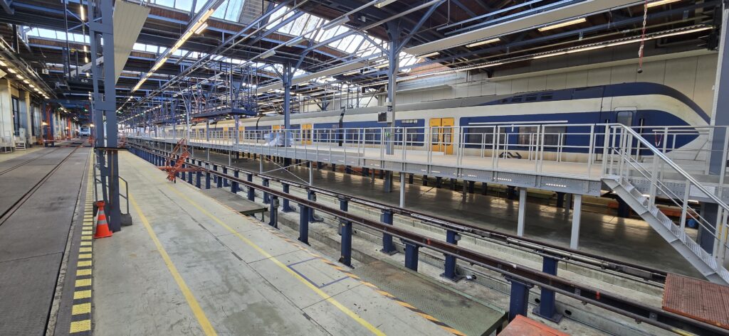 Das Wartungsteam von NS hatte mit begrenztem Platz und eingeschränkter Zugänglichkeit zu den Zugkomponenten zu kämpfen. Mit dem neuen Zwischenboden von Nolte Mezzanine wurde dieses Problem vollständig gelöst. Die Plattform bietet zusätzliche Arbeitsfläche, eine verbesserte Zugänglichkeit und eine logische Anordnung der Arbeitsbereiche. Dank des modularen Designs kann die Konstruktion bei Bedarf leicht angepasst oder erweitert werden.