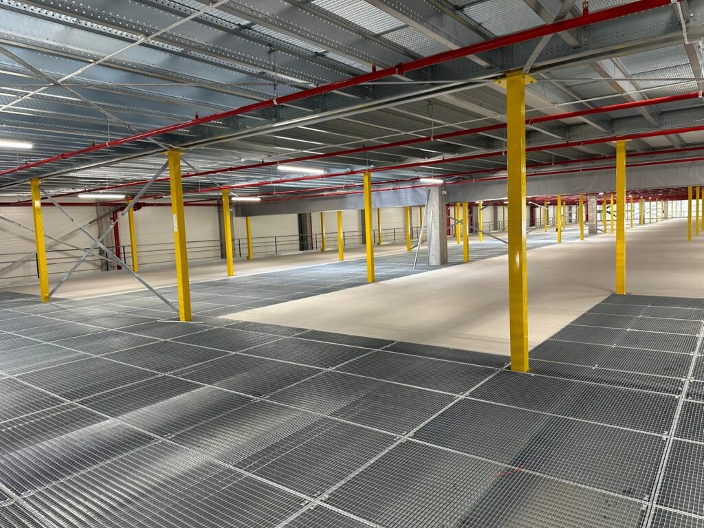 Die Mezzanine wurde aus kalt- und warmgewalzten Profilen mit einem Stützenraster von ca. 8.000 x 6.400 mm gebaut. Der Boden besteht aus Spanplatten und die Konstruktion wird durch Kreuzverbände stabilisiert. Mit Geschosshöhen von +4.630 mm und +8.050 mm ist die Mezzanine ideal für den intensiven Einsatz als Lager- und Picking-Fläche geeignet.