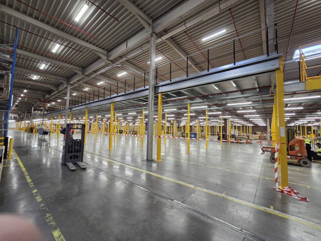 Die Mezzanine wurde aus kaltgewalzten Profilen mit einem Stützenraster von ca. 5.300 x 5.000 mm gebaut und mit einem Spanplattenboden ausgestattet. Mit einer Höhe von +4.200 mm und Stabilität durch Portale bietet die Konstruktion eine solide Basis für Lagerung und Kommissionierung. Diese Lösung macht das Lager nicht nur effizienter, sondern auch besser auf zukünftige Erweiterungen vorbereitet.